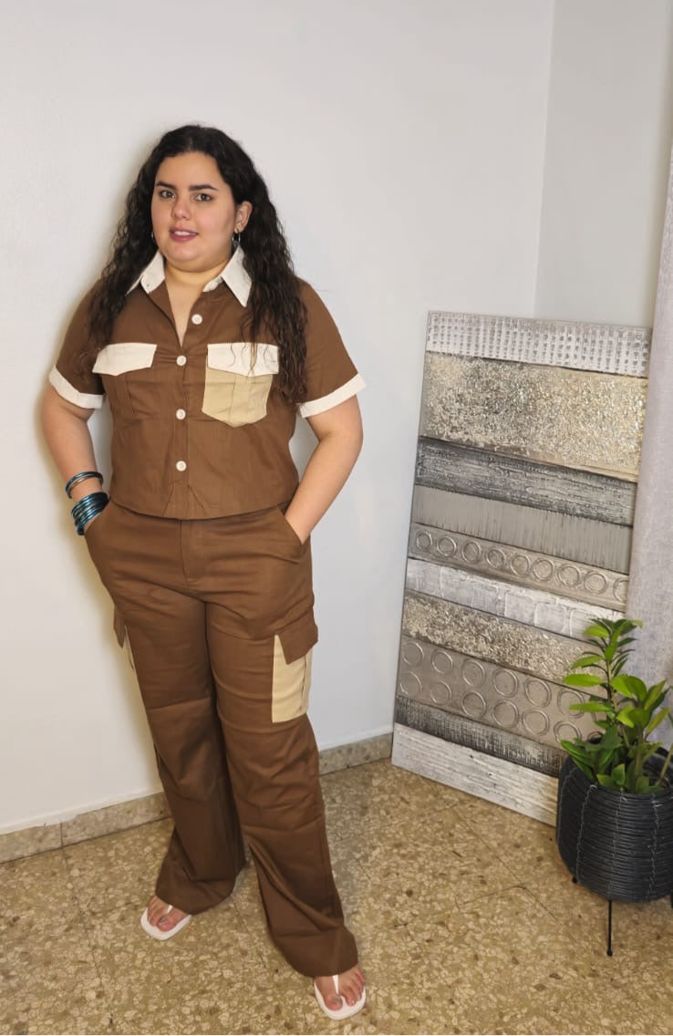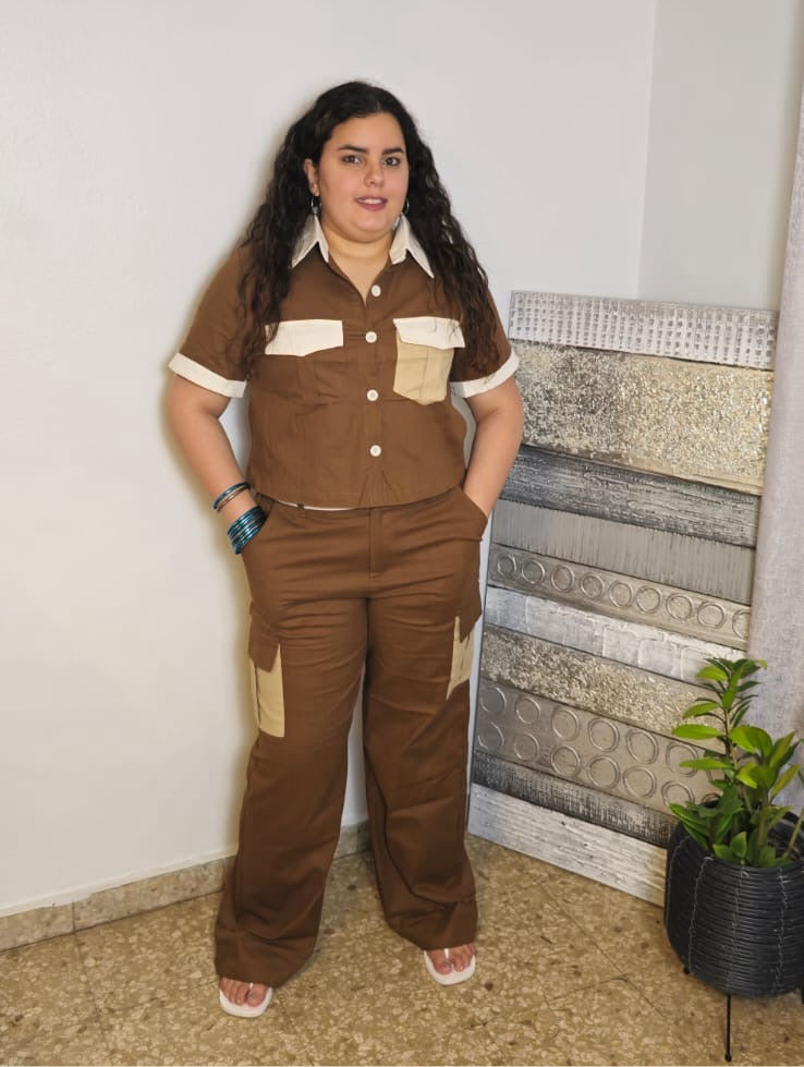 Este set es para las mujeres que disfrutan de la comodidad sin dejar de lado el estilo. Con su aire safari chic y sus detalles en contraste, es perfecto para quienes aman experimentar con la moda y proyectar seguridad en cada paso.